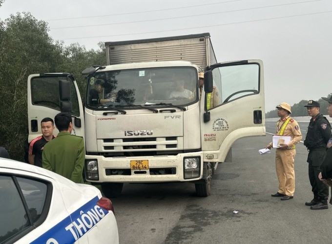 Cụ thể, khoảng 15h30 ngày 22/3, tổ công tác của Đội 2 làm nhiệm vụ tuần tra cơ động trên tuyến cao tốc Hà Nội - Hải Phòng, đến km71+100 (hướng Hải Phòng đi Hà Nội), cảnh sát phát hiện ô tô tải BKS 29C- 846.xx đang dừng đỗ tại làn khẩn cấp.