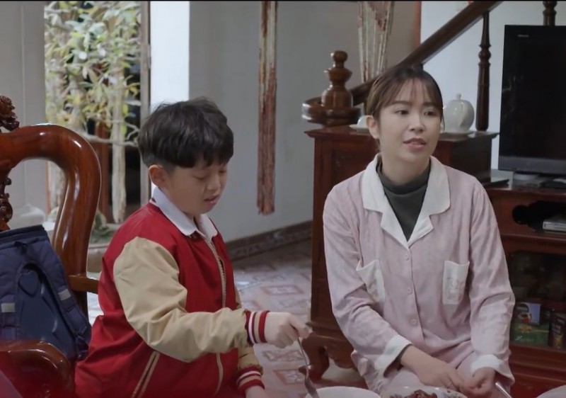 "Bác Tố lát nữa ăn xong đưa Cá Heo đi học giúp mẹ nó nhé. Tuyết (Kiều My) lát nữa vắt mấy quả cam cho chị Son", ông Công nói.