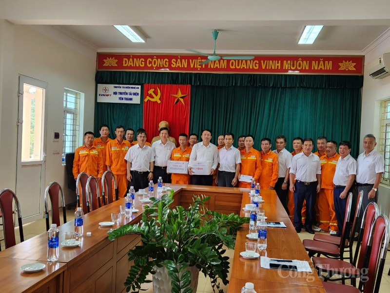 | Đoàn công tác EVNNPT do Chủ tịch HĐTV Nguyễn Tuấn Tùng và Chủ tịch Công đoàn Trịnh Tuấn Sơn đã đến thăm hỏi, động viên và trao quà cho người lao động tại Đội Truyền tải điện Yên Thành - Nghệ An |