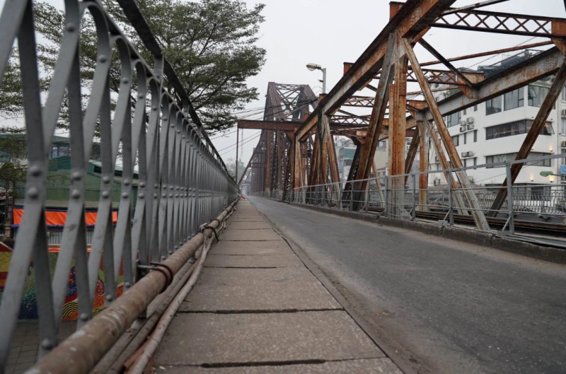 | Khu vực cầu vượt Trần Khát Chân thưa thớt người tham gia giao thông. |