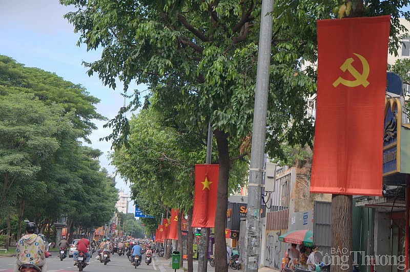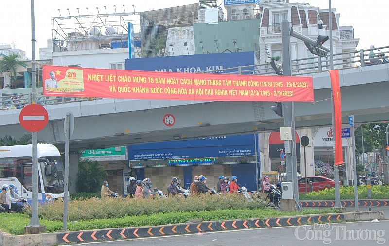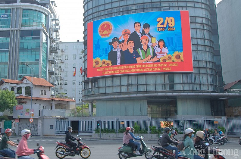 Chào mừng kỷ niệm 78 năm Cách mạng Tháng Tám và Quốc khánh 2/9, trên khắp các tuyến đường chính tại TP. Hồ Chí Minh như: Nguyễn Thị Minh Khai, Nguyễn Huệ, Lê Lợi, Lê Duẩn, Nam Kỳ Khởi Nghĩa, Nguyễn Văn Trỗi, Cách Mạng Tháng Tám, Đinh Tiên Hoàng, Xô Viết Nghệ Tĩnh, Điện Biên Phủ, Bạch Đằng, Quang Trung, Trường Chinh, Nguyễn Ảnh Thủ... được trang trí cờ hoa, băng rôn, khẩu hiệu, hệ thống màn hình led, pano - áp phích rực rỡ.