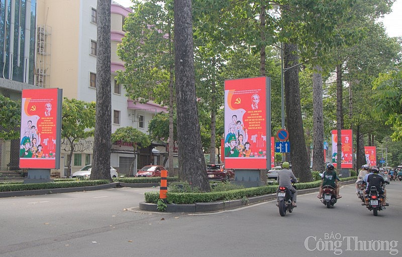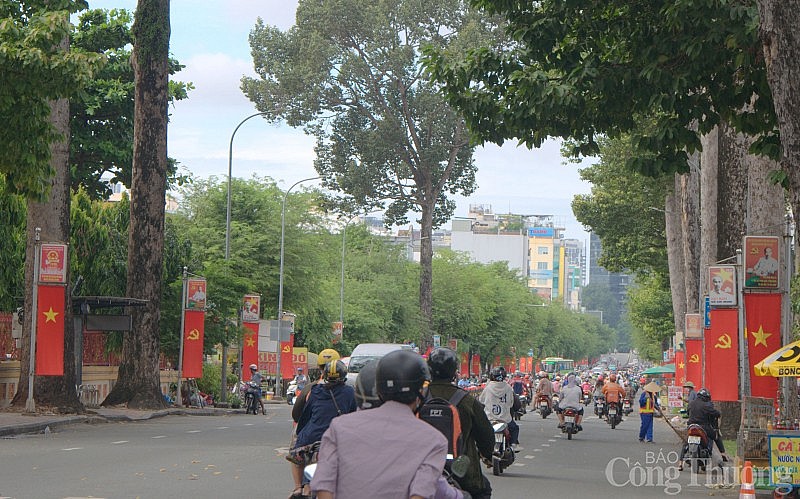 Hầu hết các tuyến đường trung tâm TP. Hồ Chí Minh đều được trang trí cờ, băng rôn, khẩu hiệu |