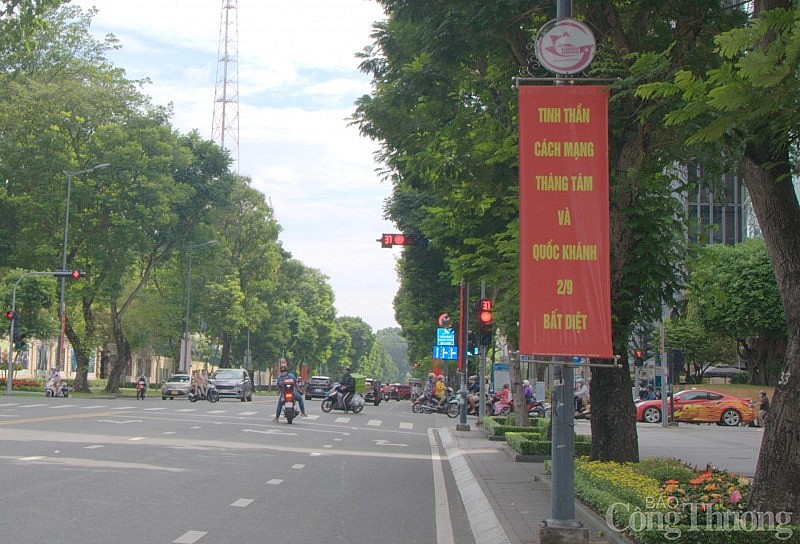 Cờ đỏ sao vàng trên nhiều tuyến phố |