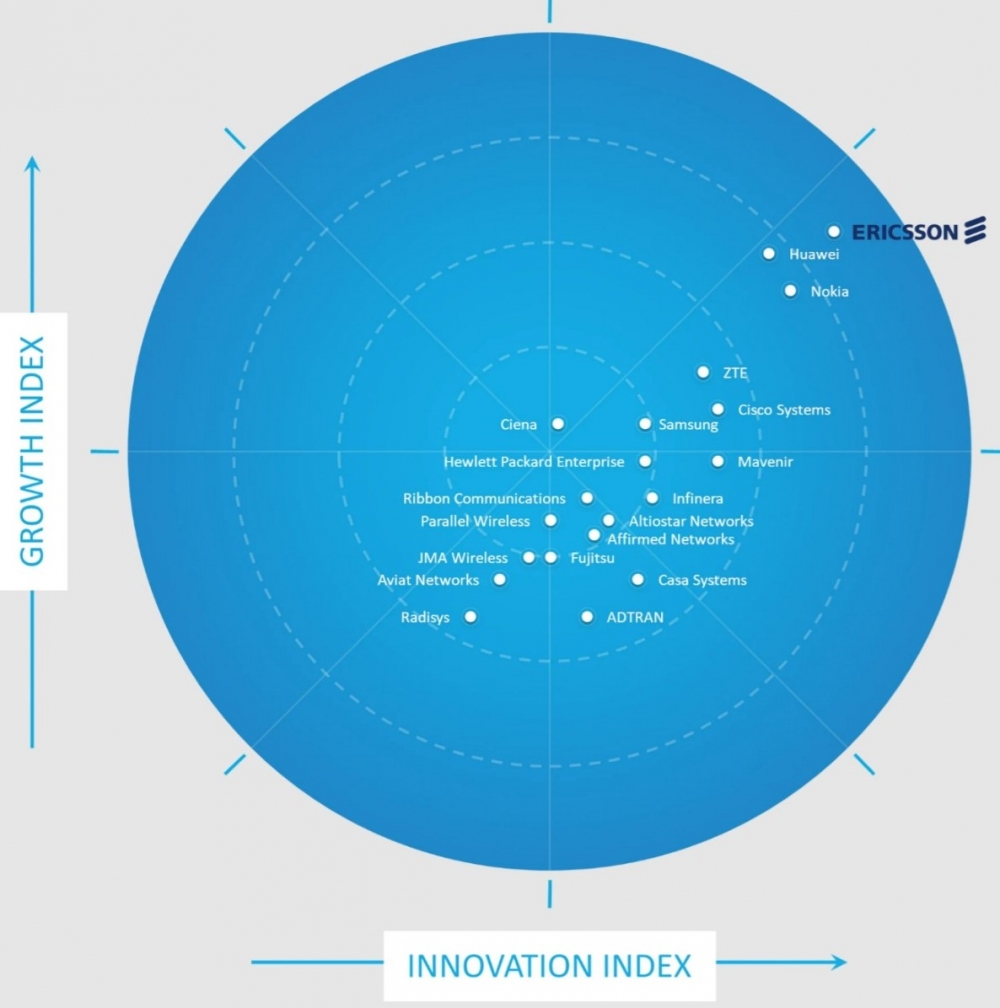 Phát huy vị thế hàng đầu hiện tại của mình trên thị trường hạ tầng mạng 4G, Ericsson tiếp tục xếp hạng cao nhất về thị trường hạ tầng mạng 5G trong bảng xếp hạng mới nhất Frost Radar - báo cáo về thị trường hạ tầng mạng 5G toàn cầu 2020 do Frost & Sullivan thực hiện. Theo Frost & Sullivan, thị trường hạ tầng mạng 5G bao gồm mạng truy cập vô tuyến (RAN), mạng truyền tải và mạng lõi, có thể bao gồm một hoặc nhiều mạng biên.