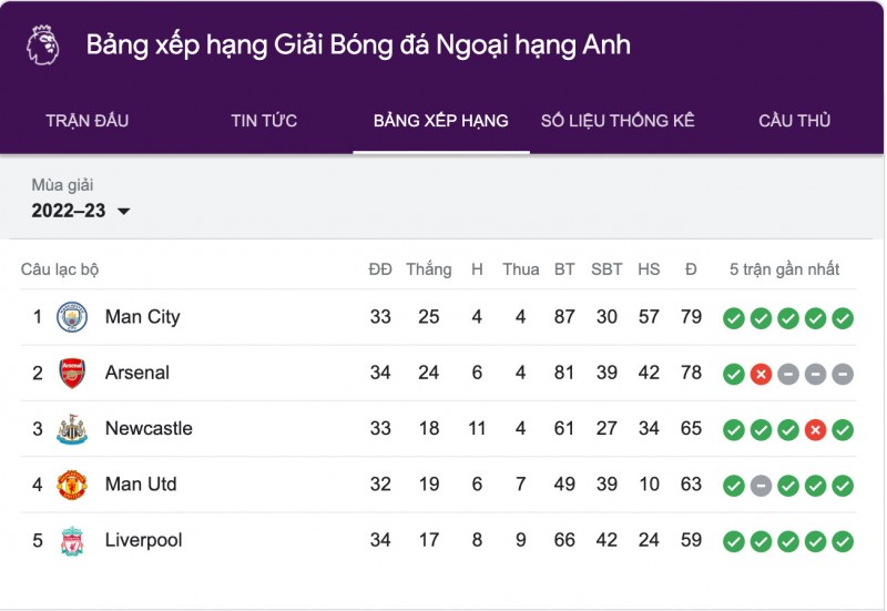 Màn trình diễn ấn tượng của Haaland trước West Ham đã góp công lớn giúp Man City vượt qua Arsenal để trở lại ngôi đầu Premier League. Chiến thắng thứ 13 liên tiếp trên sân nhà của Man City vào năm 2023 giúp đoàn quân của HLV Guardiola tiến gần hơn đến chức vô địch Ngoại hạng Anh thứ 5 trong 6 mùa giải gần nhất. Manchester City hiện đang có 79 điểm, nhiều hơn Arsenal 1 điểm và thi đấu ít hơn đối thủ một trận.
