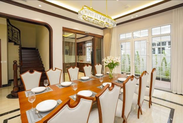 Được thiết kế theo phong cách tân cổ điển sang trọng, các căn biệt thự, liền kề sở hữu không gian rộng thoáng được sắp xếp linh hoạt, dễ dàng bố trí các phòng chức năng. Chủ đầu tư còn khéo léo đặt ẩn các điều hòa trong logia, trang bị vách kính trên mái giúp ngăn bụi và đón ánh sáng khắp căn nhà.