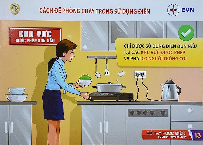 Chỉ được sử dụng điện đun nấu tại các khu vực được phép. Trong quá trình đun nấu phải trông coi và tắt bếp khi đi ra khỏi khu vực bếp hoặc đi ra khỏi nhà. Tách riêng biệt đường điện chiếu sáng với đường điện cho các thiết bị tiêu thụ công suất lớn...từng tầng, từng nhánh, từng thiết bị và có thiết bị bảo vệ (aptomat) cho từng thiết bị và toàn bộ hệ thống điện chung. Cầu dao, Aptomat phải đặt trong tủ, hộp chuyên dùng và lắp đặt ở vị trí dễ thao tác.