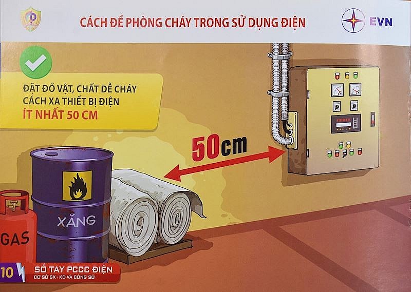 Đối với các cơ sở sản xuất, trước thời gian nghỉ dài ngày cần kiểm tra toàn bộ hệ thống điện. Lắp đặt hệ thống điện theo đúng quy định an toàn phòng cháy chữa cháy, lắp đặt antomat từ nguồn cấp điện chính, cho từng tầng, từng phòng làm việc và từng thiết bị có công suất lớn; kiểm tra, cắt điện đối với hệ thống điện, thiết bị điện không cần thiết trong giờ nghỉ hoặc khi hết giờ làm việc. Để hàng hóa dễ cháy cách tủ điện, bóng điện, chấn lưu đèn nê ông, bảng điện tối thiểu 50 cm. Sử dụng quạt phải có lồng bảo hiểm.