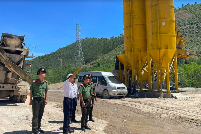 | Truyền tải điện Bình Định (PTC3) phối hợp Phòng An ninh kinh tế - Công an tỉnh Bình Định kiểm tra tại điểm thi công cao tốc Bắc Nam giao chéo với lưới truyền tải điện |