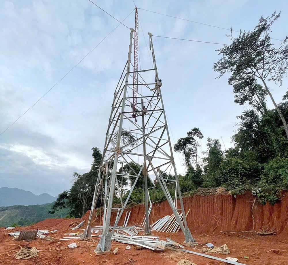 | Thi công dự án đường dây 220kV trạm cắt Nậm Sum - Nông Cống (Ảnh: EVNNPT) |