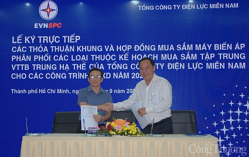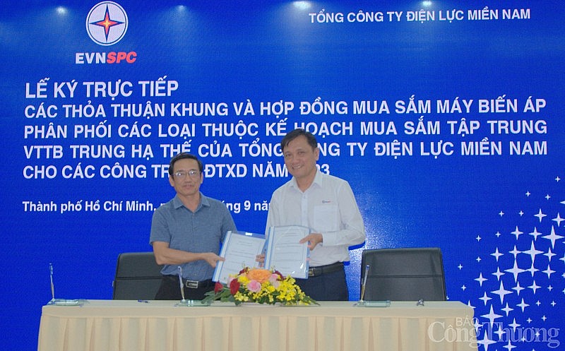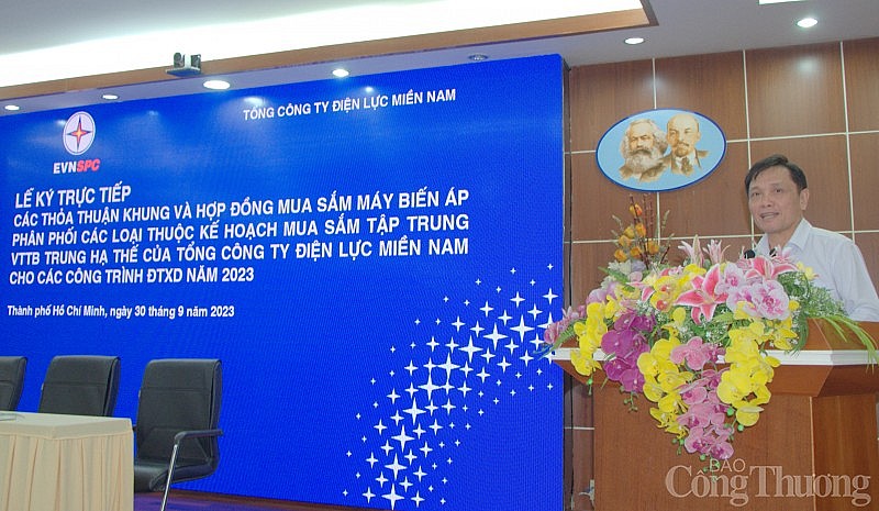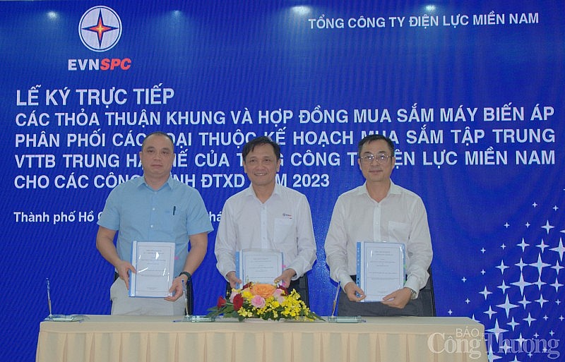 Sáng ngày 30/9/2023, Tổng công ty Điện lực miền Nam tổ chức lễ ký kết các thỏa thuận khung và hợp đồng mua sắm máy biến áp phân phối các loại thuộc kế hoạch mua sắm tập trung vật tư thiết bị trung hạ thế cho các công trình đầu tư xây dựng năm 2023.