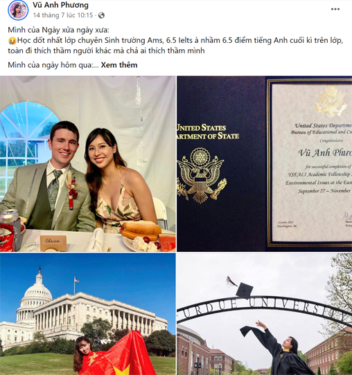 Chị Vũ Anh Phương, đang làm việc tại một công ty lớn về công nghệ sinh học ở Mỹ, sau khi được bạn bè tag vào group bảo “flex đi” cũng đã hưởng ứng. Chị chia sẻ “Ngày xưa, chị học dốt nhất lớp chuyên Sinh trường Ams, cuối kỳ tiếng Anh được 6.5 điểm, toàn thích thầm người khác” nhưng giờ đây chị đang làm cho một công ty lớn tại Mỹ, thu nhập vài tỷ/ năm, đưa bố mẹ sang Mỹ du lịch 1 tháng bằng tiền mình làm ra.
