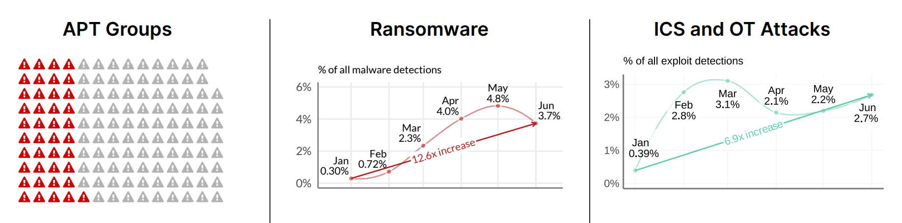 Theo đó, trong nửa đầu năm 2023, FortiGuard Labs nhận ra xu thế "ẩn mình" tinh vi và ngày càng khó phát hiện hơn của mã độc tống tiền (ransomware). Các tổ chức đã không còn dễ dàng nhận biết được dấu hiệu của các cuộc tấn công của ransomware, thêm vào đó, hoạt động tấn công có chủ đích (APT) cùng sự biến đổi trong kỹ thuật tấn công của tin tặc (hacker) cũng xuất hiện những động thái mới.