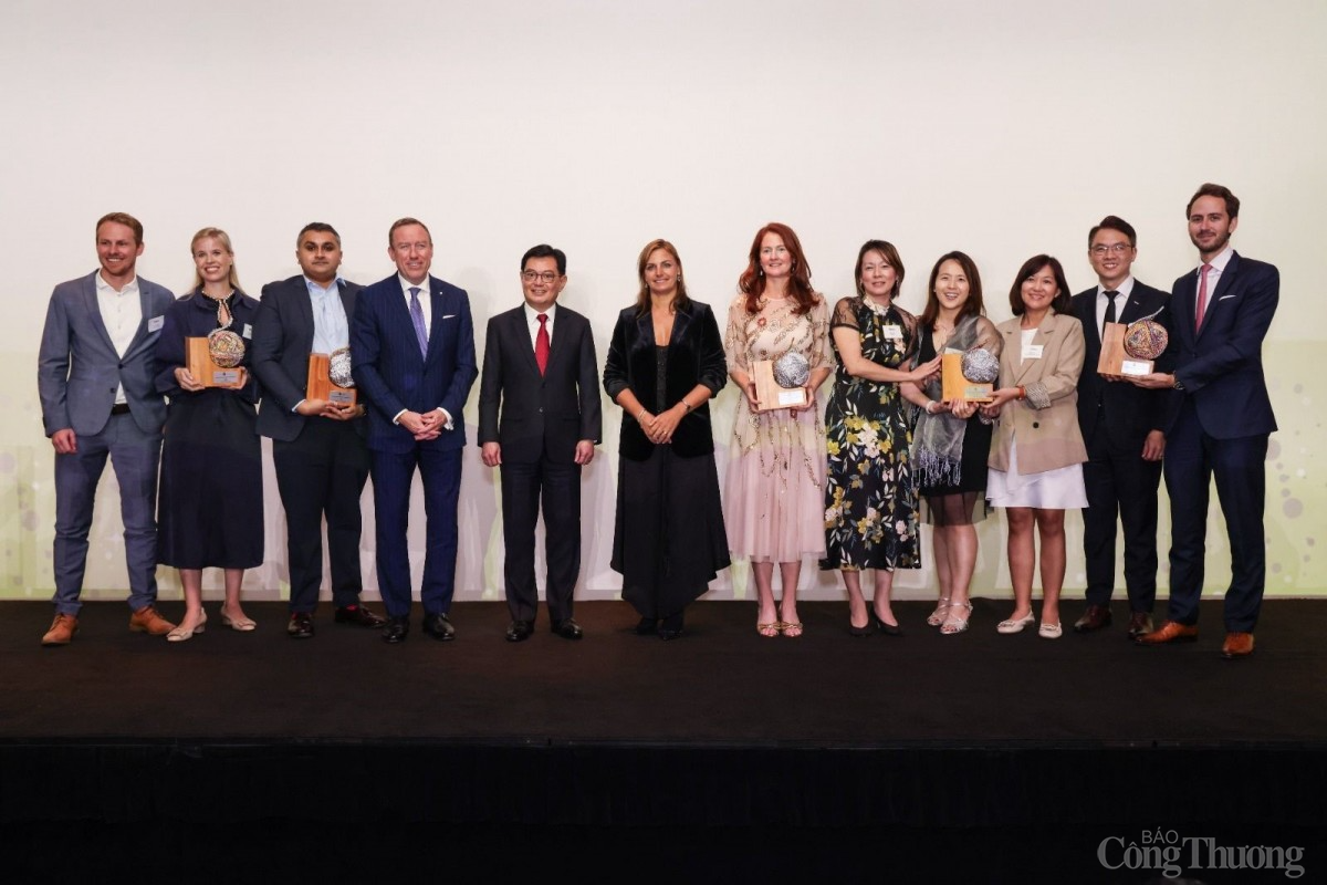 Đại diện FrieslandCampina (thứ 3 từ trái qua) nhận giải “Chuỗi giá trị đổi mới bền vững” 2024 (Sustainovation Value Chain) do EuroCham Singapore tổ chức |