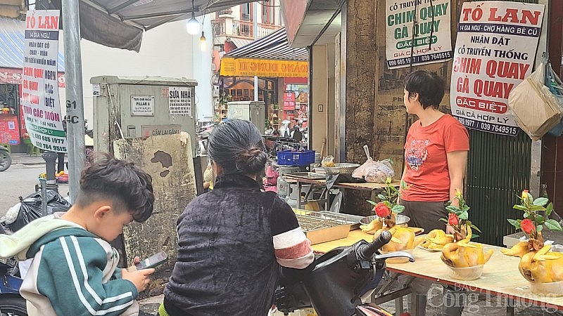 Chợ Hàng Bè ở phố cổ Hà Nội nổi tiếng với đồ ăn tươi ngon, nổi tiếng với tên gọi vui là "chợ nhà giàu". Vào dịp Tết ông Công ông Táo, gà ngậm hoa hồng giá nửa triệu là bán chạy nhất.