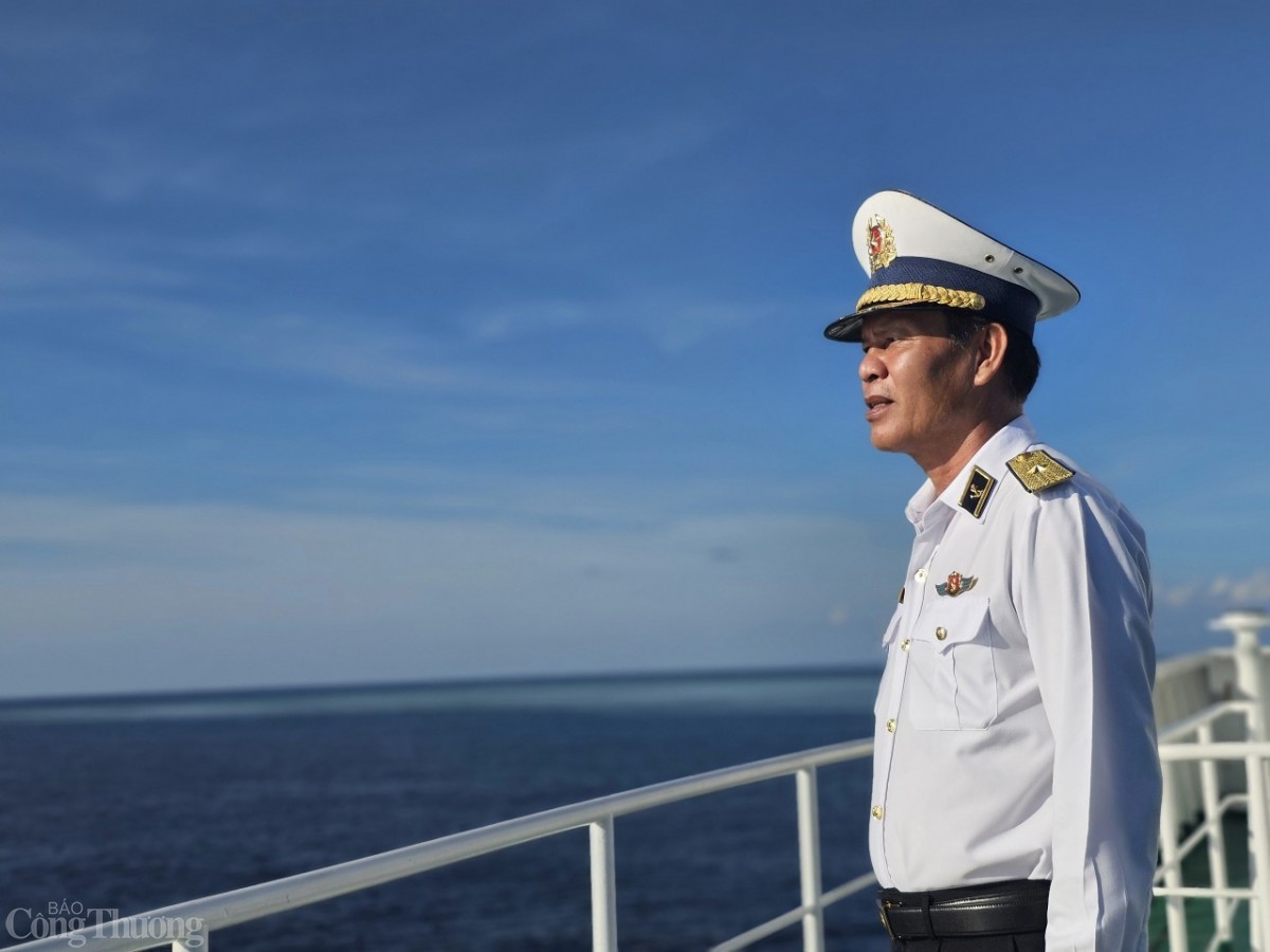 Chuẩn đô đốc Nguyễn Viết Khánh nhìn về phía đảo Gạc Ma nơi đồng đội mình đã ngã xuống