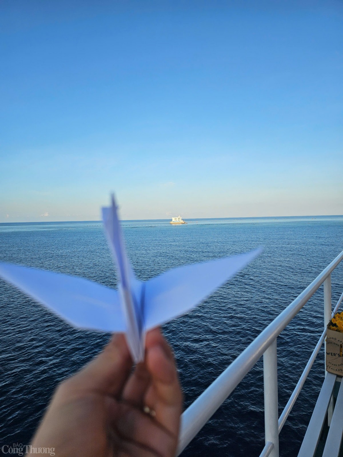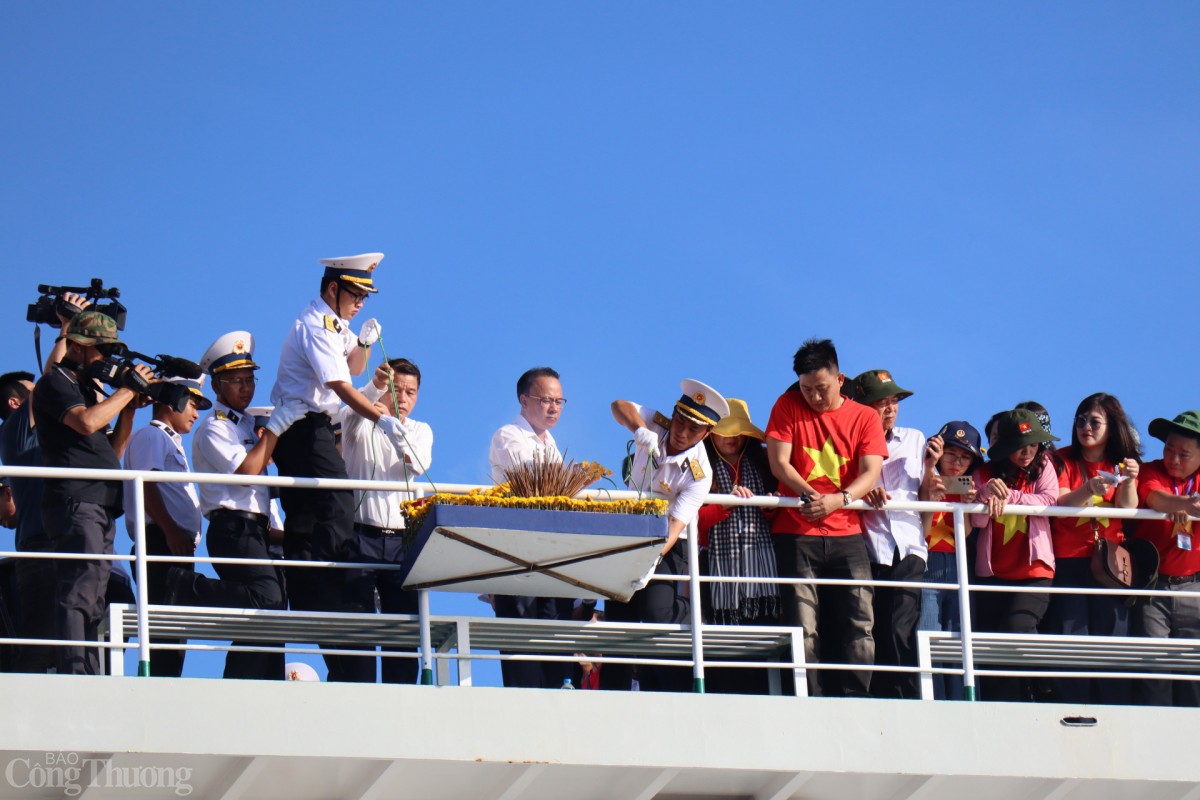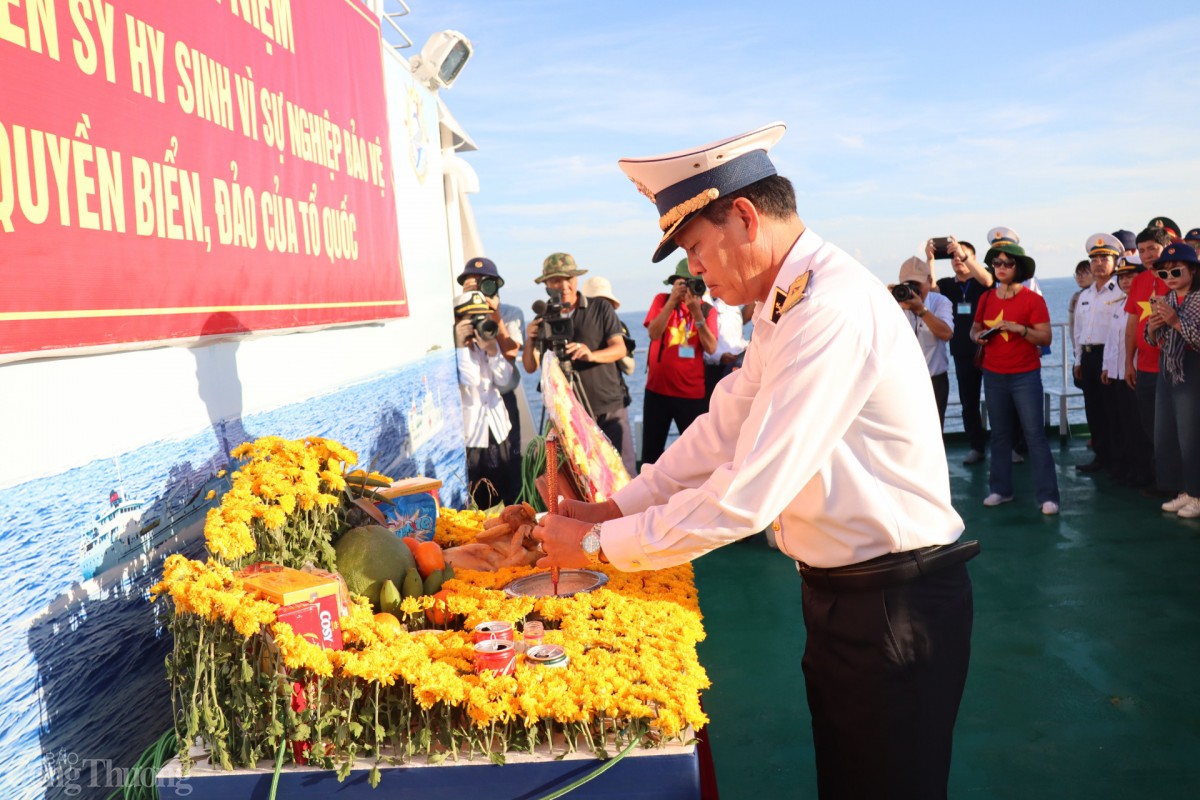Trong chuyến hải trình, Đoàn công tác số 19 đã làm lễ tưởng niệm các anh hùng liệt sĩ. Chúng tôi đã lần lượt dâng nén tâm hương, thả những con hạc giấy, cành hoa tươi thắm vào lòng đại dương để tưởng nhớ các anh.