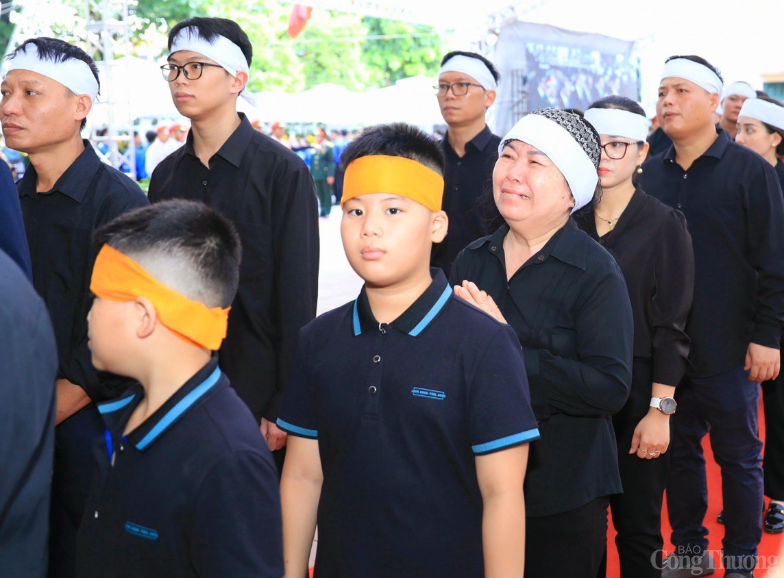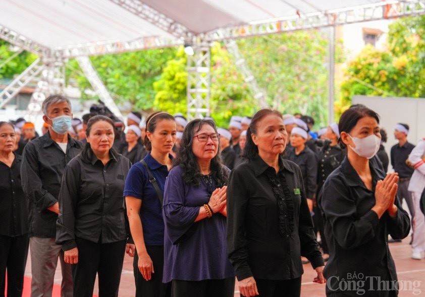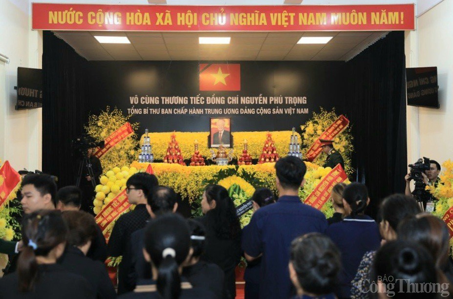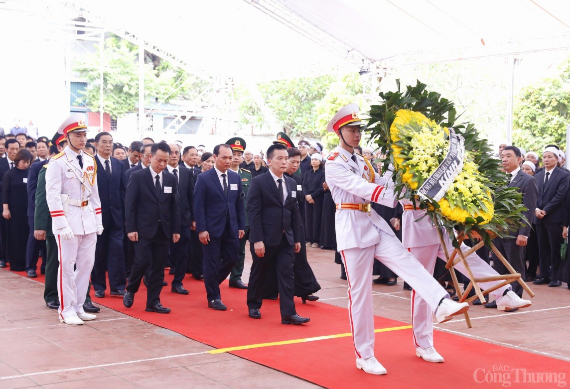 Ngay sau lời khai mạc của Ban Tổ chức Lễ tang, các đoàn thể đại diện cơ quan, tổ chức có mặt tại sân Nhà văn hóa thôn Lại Đà nghiêm trang dành một phút mặc niệm Tổng Bí thư Nguyễn Phú Trọng - Người con ưu tú của quê hương.