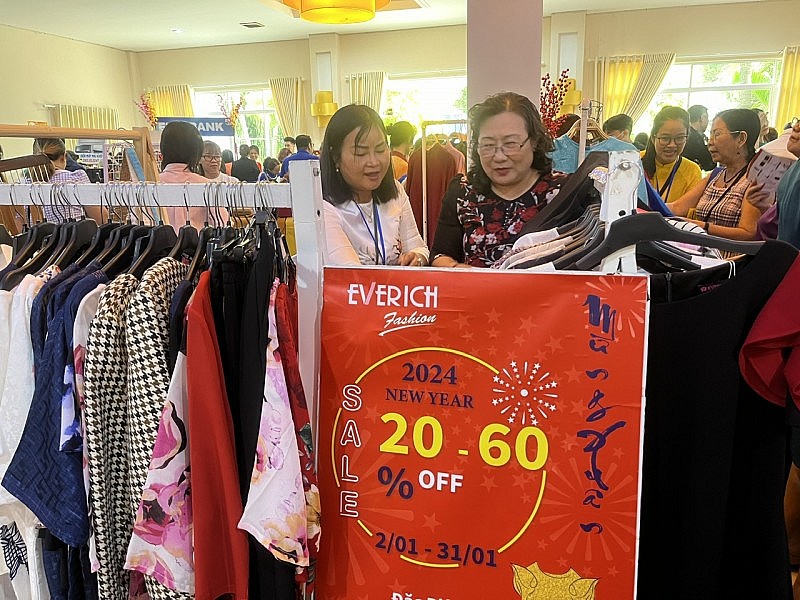 Các doanh nghiệp này đem tới giới thiệu và bán gần 1.000 mặt hàng thời trang, phụ kiện; gia dụng, hóa mỹ phẩm, mỹ nghệ đến các loại thực phẩm khô, đông lạnh, chay, mặn, bánh kẹo, mứt Tết... Tất cả các mặt hàng đều được bán với giá ưu đãi, giảm 20%-70% so với giá niêm yết.