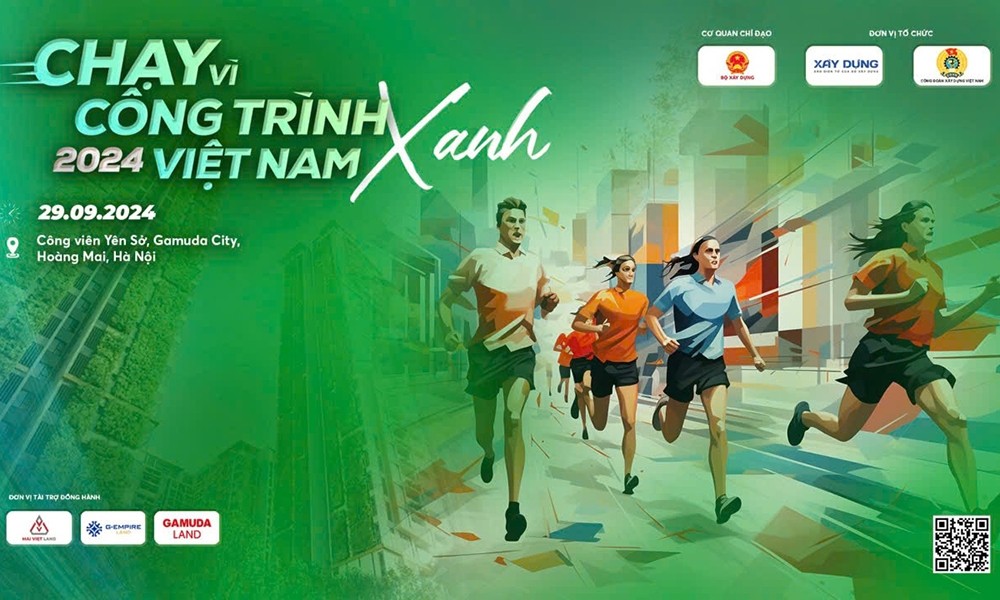 Giải chạy bộ “Vì Công trình xanh Việt Nam năm 2024” diễn ra tại Công viên Yên Sở - Gamuda City (Hà Nội) do Báo Xây dựng phối hợp với Công đoàn Xây dựng Việt Nam tổ chức.