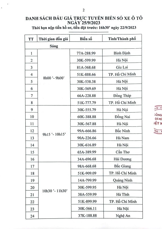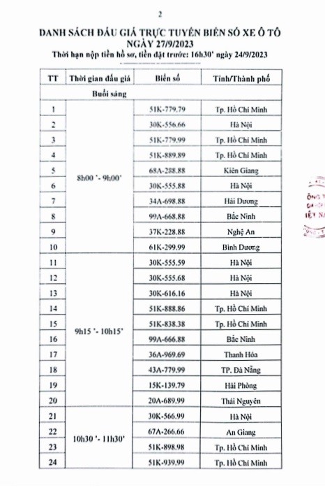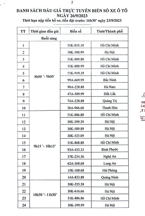 | Danh sách đấu giá trực tuyến biển số xe ô tô sáng ngày 25/9 |