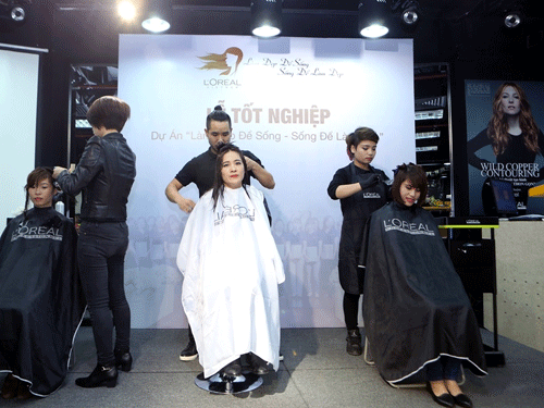 Các học viên tốt nghiệp của Dự án “Làm đẹp để sống- Sống để làm đẹp” của L’Oreal trình diễn tại Lễ tốt nghiệp. |