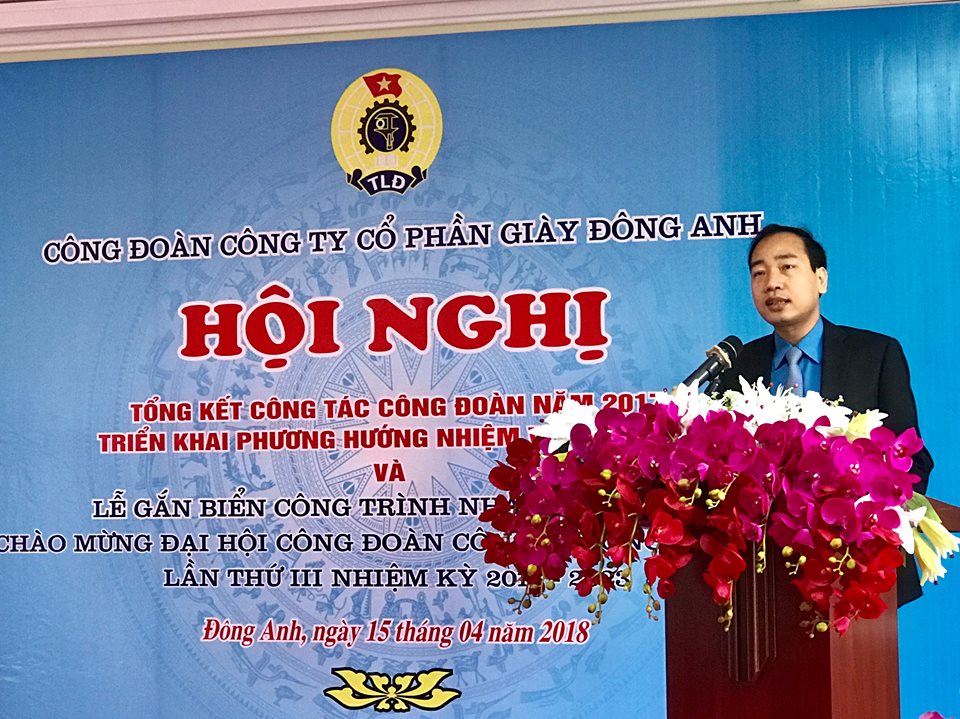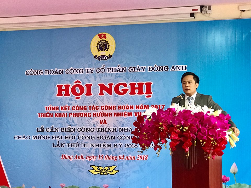 | Ông Nguyễn Đức Đăng, Bí thư Chi bộ, Chủ tịch Hội đồng quản trị, Tổng giám đốc Công ty CP Giày Đông Anh phát biểu tại hội nghị |