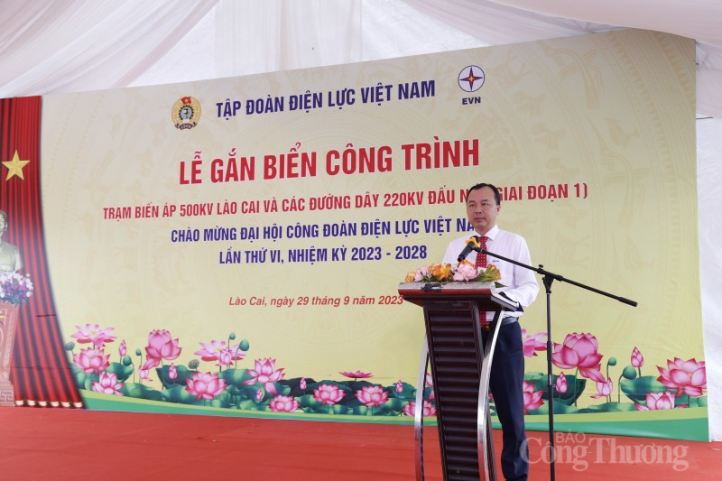 Phát biểu tại buổi lễ ông Uông Quang Huy, Phó Chủ tịch Công đoàn Điện lực Việt Nam đã ghi nhận, biểu dương những nỗ lực khắc phục mọi khó khăn của Chủ đầu tư Ban QLDA Điện 1 và các nhà thầu thi công, để hoàn thành giai đoạn 1 công trình đảm bảo chất lượng, tiến độ gắn biển Công trình chào mừng Đại hội VI Công đoàn Điện lực Việt Nam, nhiệm kỳ 2023 - 2028.