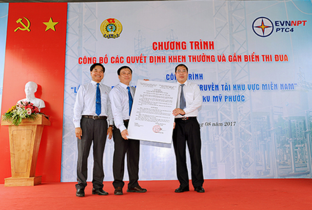 Ngày 1/8, tại Bình Dương, Tổng công ty Truyền tải điện quốc gia (EVN NPT) và Công ty Truyền tải điện 4 (PTC4) đã tổ chức chương trình công bố các quyết định khen thưởng và gắn biển thi đua công trình “Lắp đặt tụ bù ngang trên lưới điện truyền tải khu vực miền Nam” phần trạm 220kV Mỹ Phước.
