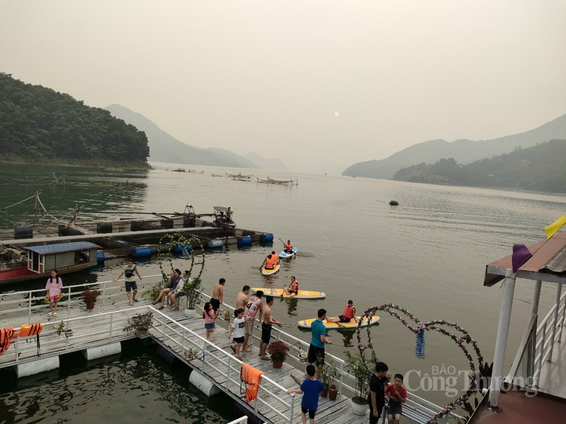| Ngày càng có nhiều du khách đến tham quan, trải nghiệm tại vùng lòng hồ Hoà Bình. (Ảnh: Dần Thanh) |