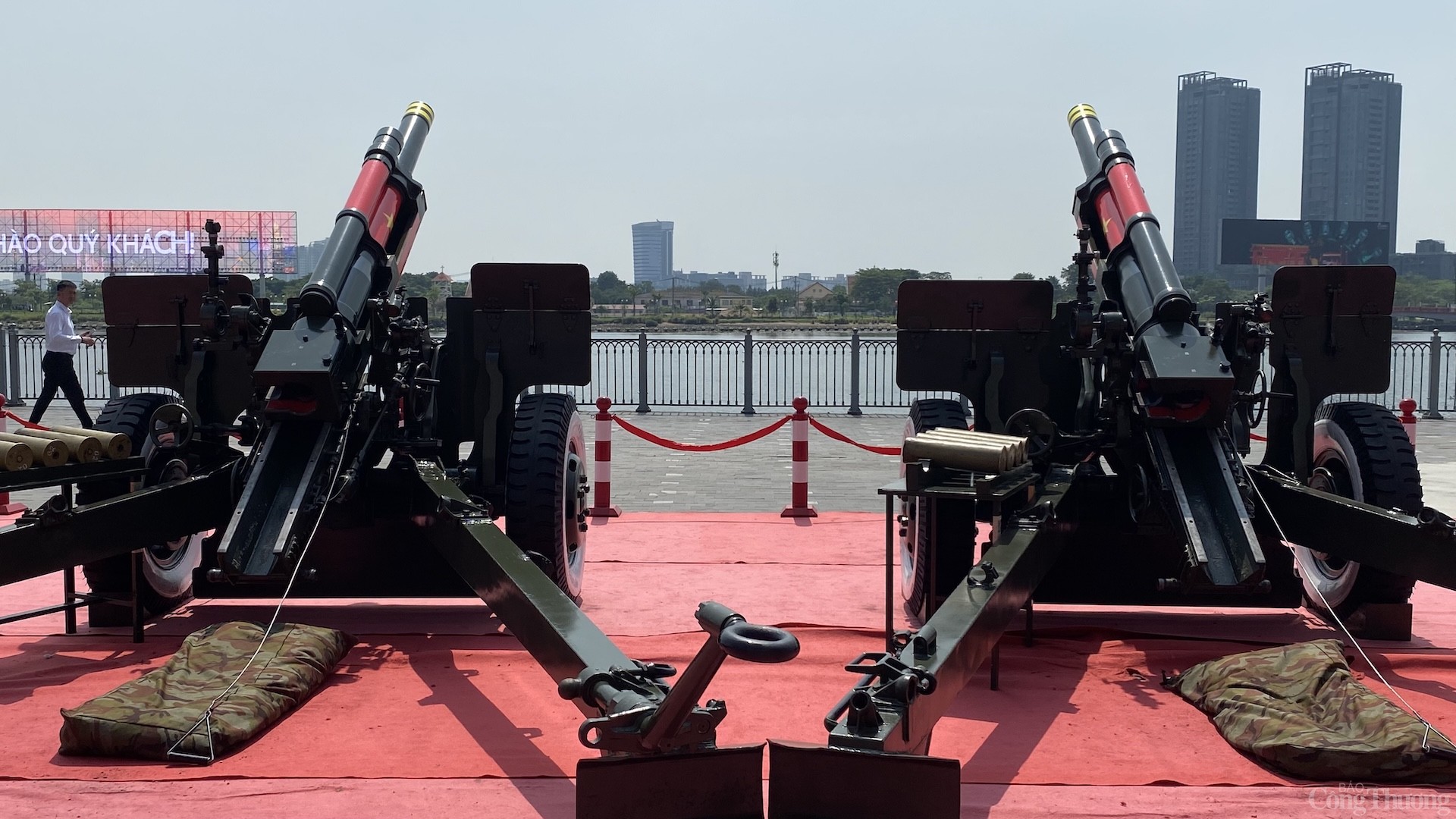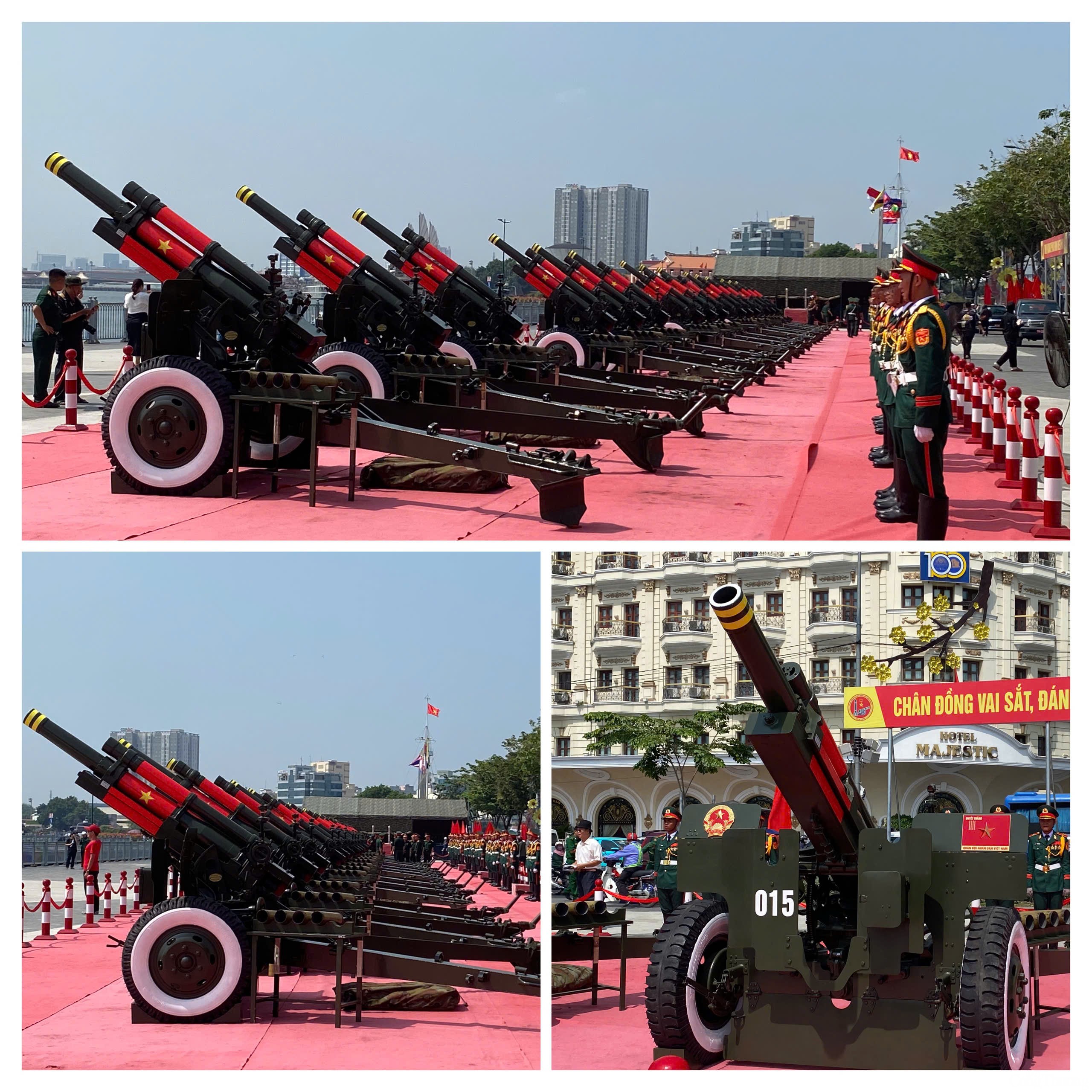 Một số hình ảnh phóng viên ghi nhận tại khu vực sân khấu chính (trước cổng Dinh Độc Lập - đường Lê Duẩn) và các chiến sĩ tập luyện bắn pháo đại bác tại công viên Bến Bạch Đằng: