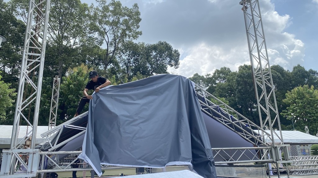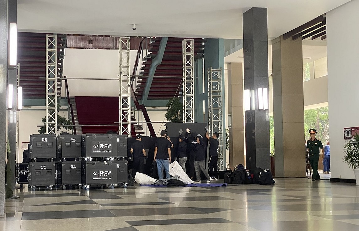 Theo nhân viên cho biết, công tác chuẩn bị cho lễ viếng Tổng Bí thư Nguyễn Phú Trọng tại Hội trường Thống Nhất phải được hoàn tất trong ngày mai (24/7).