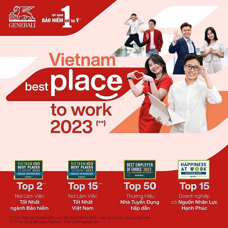 Đây là sự ghi nhận đáng tự hào đối với nhiều nỗ lực và đầu tư của Generali Việt Nam để trở thành môi trường “hơn cả một nơi làm việc”. Nhiều năm liền góp mặt trong bảng xếp hạng “Top 100 Nơi làm việc tốt nhất Việt Nam”, năm nay Công ty TNHH BHNT Generali Việt Nam (“Generali Việt Nam”) tiếp tục khẳng định vị thế trong lĩnh vực tài chính, bảo hiểm với 4 danh hiệu: Top 2 Nơi làm việc tốt nhất trong ngành Bảo hiểm; Top 15 Nơi làm việc tốt nhất Việt Nam; Top 15 Doanh nghiệp tiêu biểu có nguồn nhân lực hạnh phúc 2023 và Top 50 Thương hiệu Nhà tuyển dụng hấp dẫn với sinh viên Việt Nam 2023.