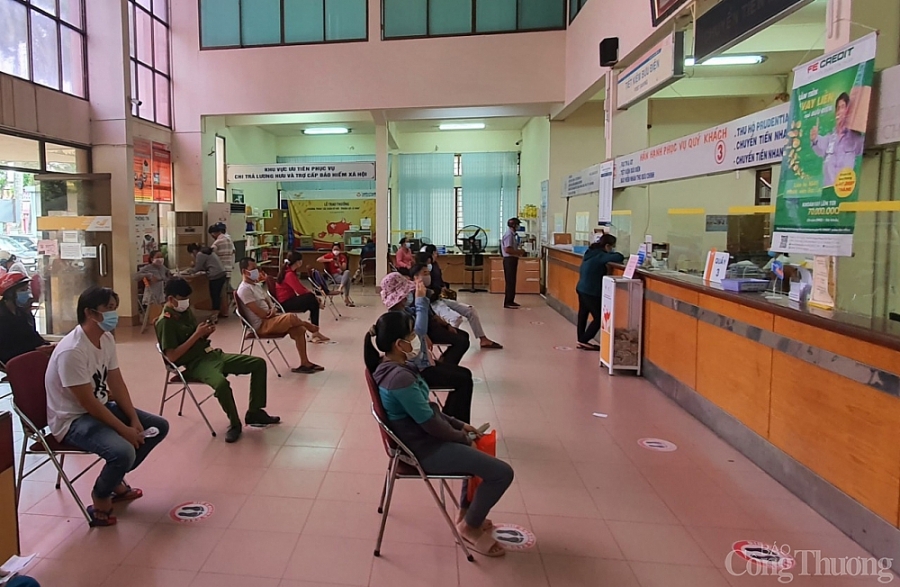 | Nhiều người dân thực hiện nguyên tắc 5K của ngành y tế khi tới Bưu điện Củ Chi giao dịch |