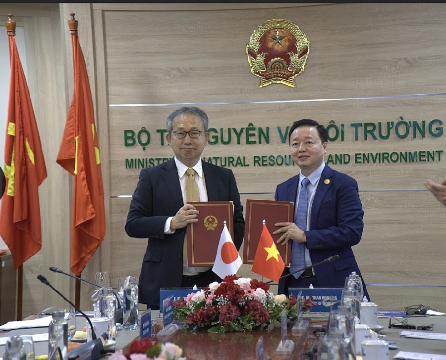 Đại sứ Nhật Bản tại Việt Nam Yamada Takio và Bộ trưởng Bộ Tài nguyên và Môi trường Trần Hồng Hà đã ký biên bản ghi nhớ