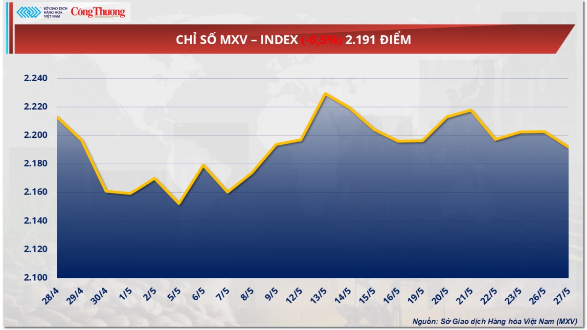 Theo MXV, khép lại phiên giao dịch hôm qua, chỉ số MXV-Index nguyên liệu công nghiệp ghi nhận phiên điều chỉnh giảm nhẹ. Đáng chú ý, giá hai mặt hàng cà phê diễn biến phân hóa rõ nét. Cụ thể, hợp đồng cà phê Arabica giao tháng 7 trên sàn ICE US tăng nhẹ 0,19%, lên 7.974 USD/tấn. Ngược lại, hợp đồng cà phê Robusta giao tháng 7 trên sàn ICE EU giảm sâu 1,96%, xuống còn 4.696 USD/tấn mức thấp nhất trong vòng 7 tuần trở lại đây.