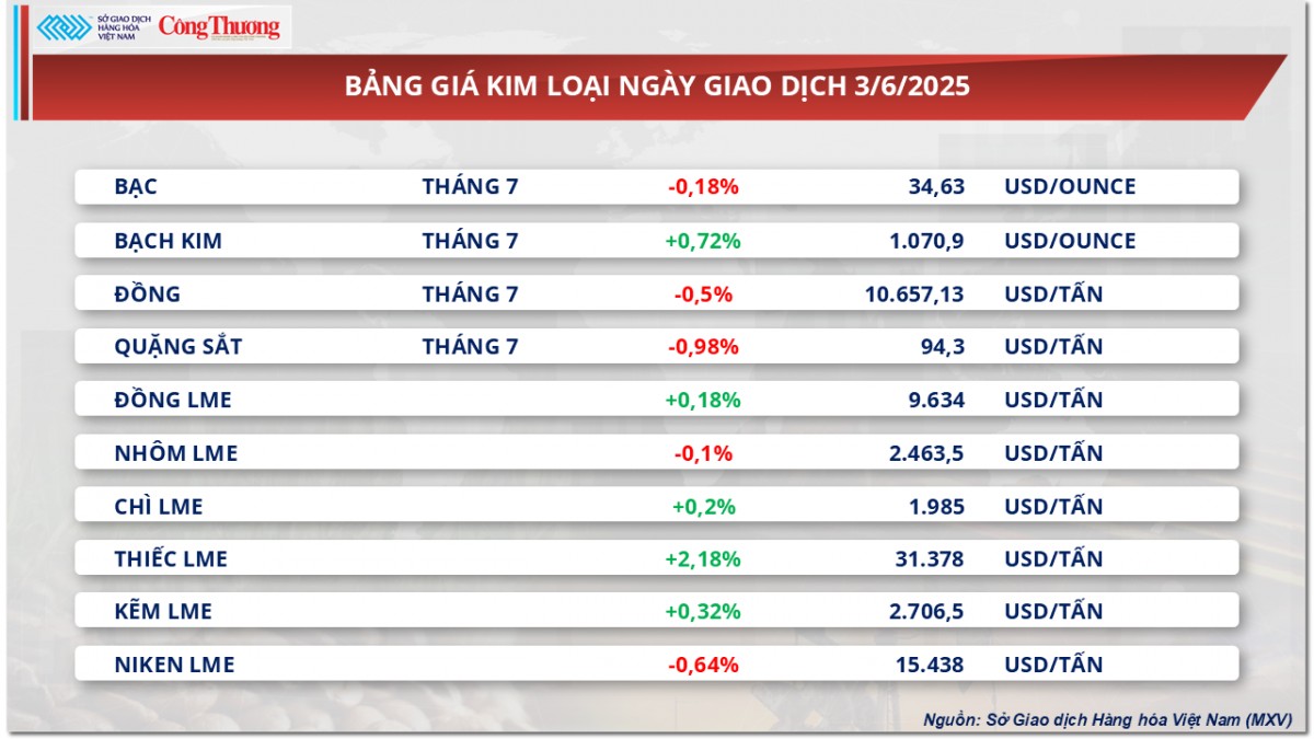 Khác với xu hướng trên thị trường năng lượng, nhóm nguyên liệu công nghiệp chứng kiến sự phân hóa rõ nét giữa các mặt hàng chủ chốt.