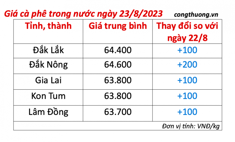 | Giá cà phê 23/8, giá cà phê trong nước ngày 23/8/2023 |