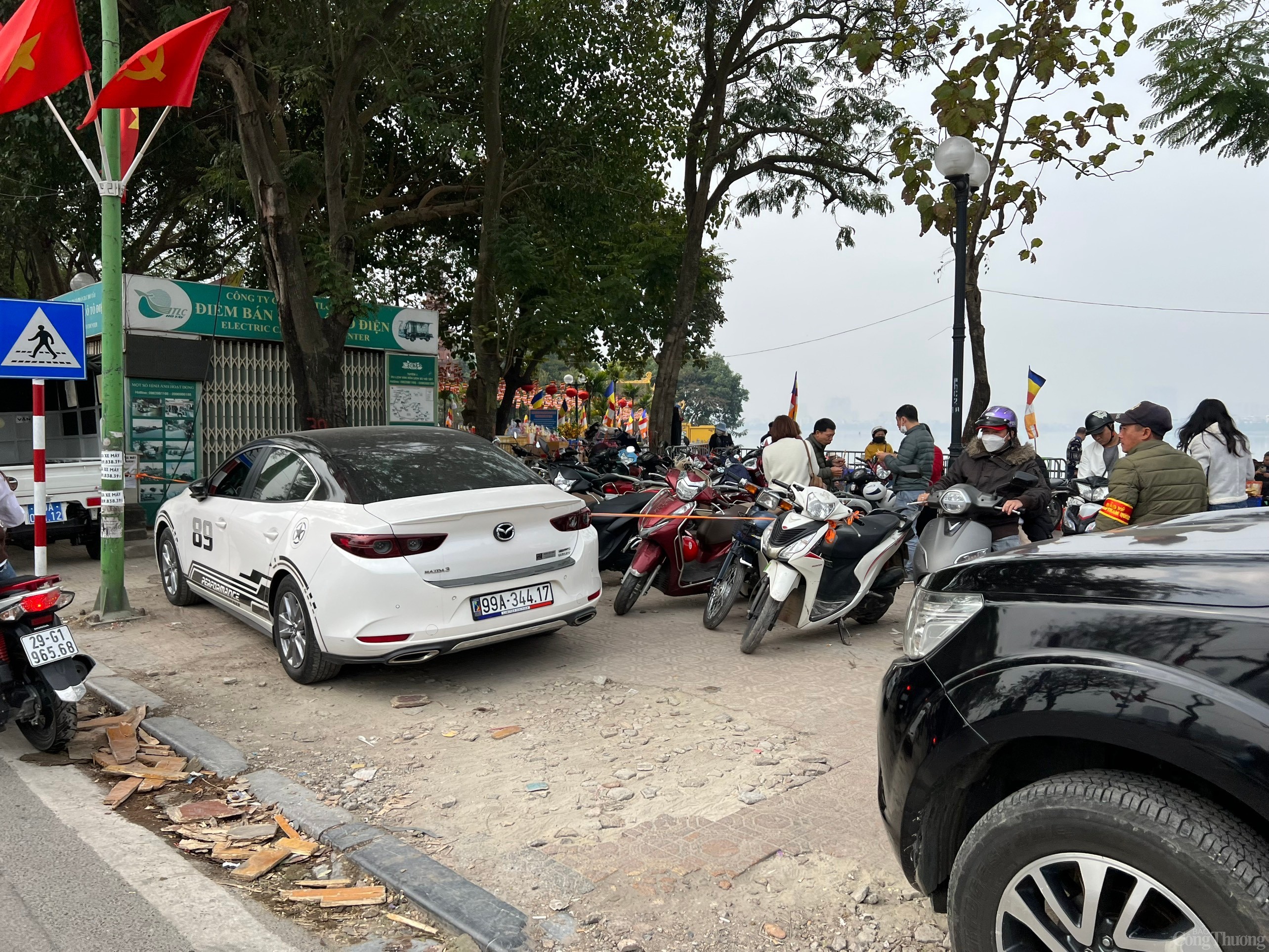 Tại Chùa Trấn Quốc, Đền Quán Thánh (quận Ba Đình) lợi dụng ngày Tết đông đúc, nhiều bãi trông giữ xe tự phát mọc ra với giá cao gấp 2-3 lần so với giá quy định. Không chỉ thu phí cao với xe máy, một số người dân còn phản ánh việc thu phí vô lý khi đỗ ô tô.
