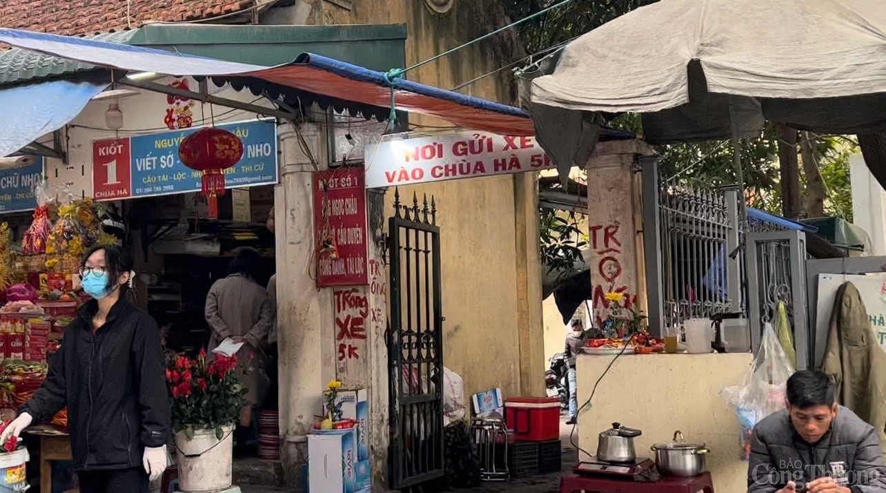 Còn tại khu vực chùa Hà (Cầu Giấy), biển “khu vực gửi xe miễn phí” được đặt ở nơi dễ nhìn thấy, còn biển “gửi xe vào chùa Hà 5K” được ghi rất nhỏ ở góc khuất hơn. Nhân viên bảo vệ tại bãi xe do cơ quan chức năng sắp xếp cho biết: “Ban quản lý chùa tổ chức bãi gửi xe miễn phí phục vụ người dân đi lễ. Tuy nhiên, có 1 vài bãi xe thu phí là của nhà dân quanh đây họ làm dịch vụ để kiếm thêm”.