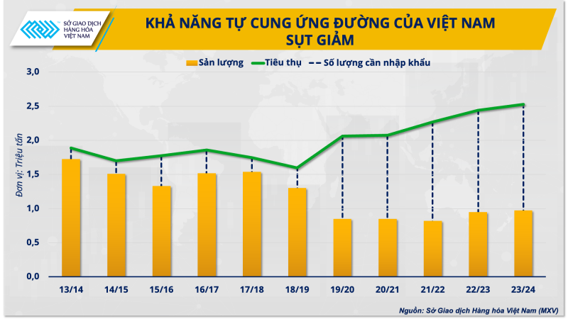 Ông Nguyễn Đức Dũng, Phó Tổng Giám đốc MXV nhận định rằng phụ thuộc nhiều vào đường nhập khẩu khiến Việt Nam chưa “làm chủ” được giá và chịu biến động đồng pha với giá đường thế giới. Tuy nhiên, những tác động sẽ giảm bớt khi Việt Nam phục hồi được vùng nguyên liệu và dần tự chủ ngành công nghiệp sản xuất đường.