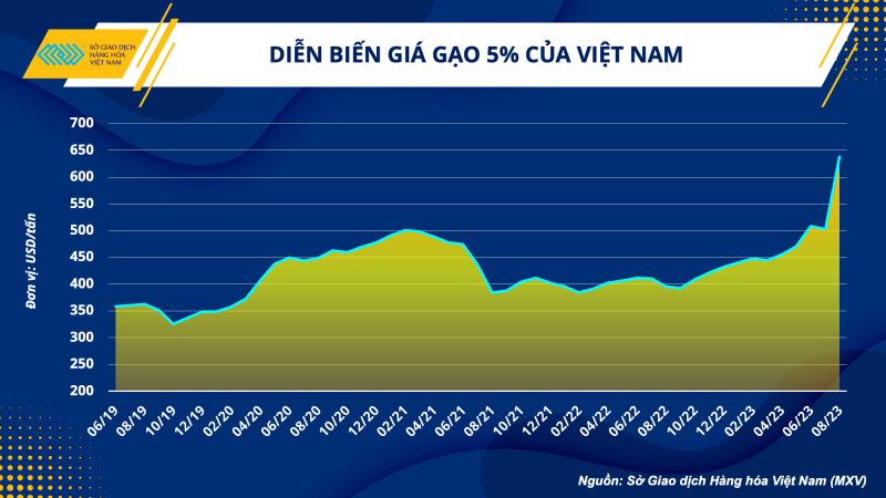 Số liệu của Bộ Công Thương cho thấy, năm 2022, xuất khẩu gạo của Việt Nam đạt 7,1 triệu tấn, cao nhất trong 10 năm, đạt giá trị 3,45 tỷ USD. Ước tính, đến hết tháng 7/2023, Việt Nam xuất khẩu 4,83 triệu tấn gạo, trị giá 2,58 tỷ USD, tăng 18,7% về lượng và tăng 29,6% về trị giá so với cùng kỳ năm 2022.