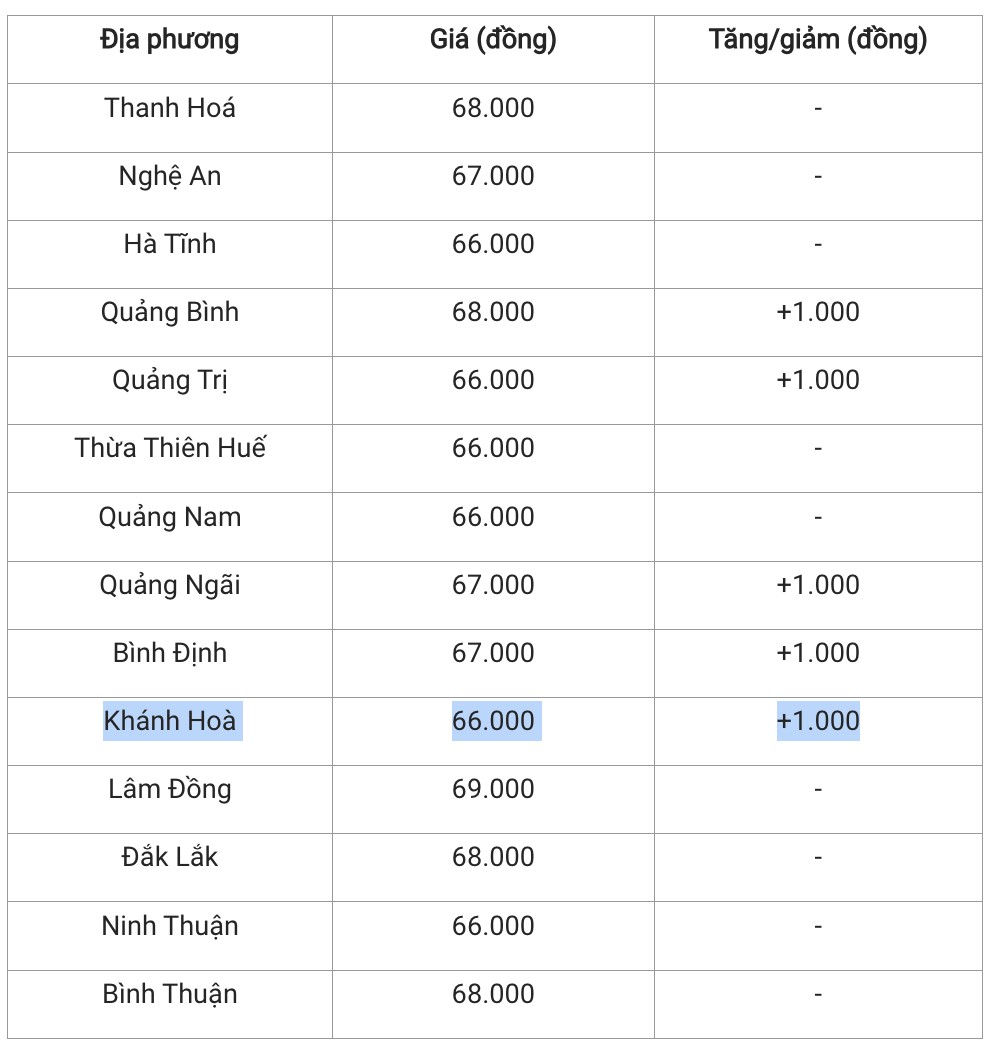 Lâm Đồng đạt ngưỡng cao nhất khu vực với mức giá 69.000 đồng/kg. Trong khi đó, heo hơi tại Bình Thuận và Đắk Lắk lên cùng mức thu mua với Thanh Hóa, đạt 68.000 đồng/kg; Quảng Nam lên 66.000 đồng/kg. Các tỉnh còn lại có giá heo hơi dao động từ 65.000 - 67.000 đồng/kg.