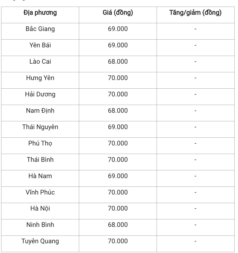 Hiện tại, giá heo hơi tại khu vực nay đang thu mua dao động trong khoảng 68.000 - 70.000 đồng/kg. Khu vực miền Bắc là nơi có nhiều tỉnh, thành có giá heo hơi cao nhất cả nước với 70.000 đồng/kg.