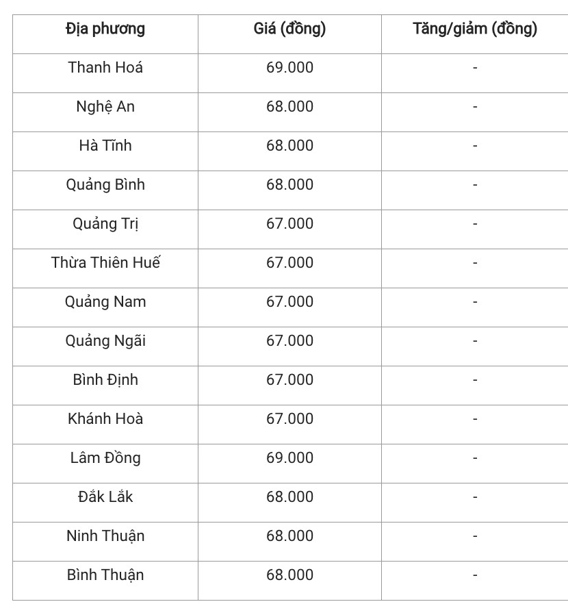 Trong đó, tỉnh Lâm Đồng và Thanh Hoá có giá heo hơi cao nhất khu vực với mức giá 69.000 đồng/kg. Các tỉnh còn lại có giá heo hơi dao động từ 66.000 - 67.000 đồng/kg.