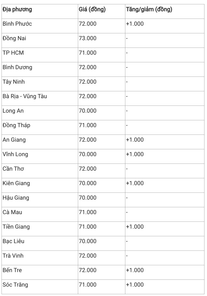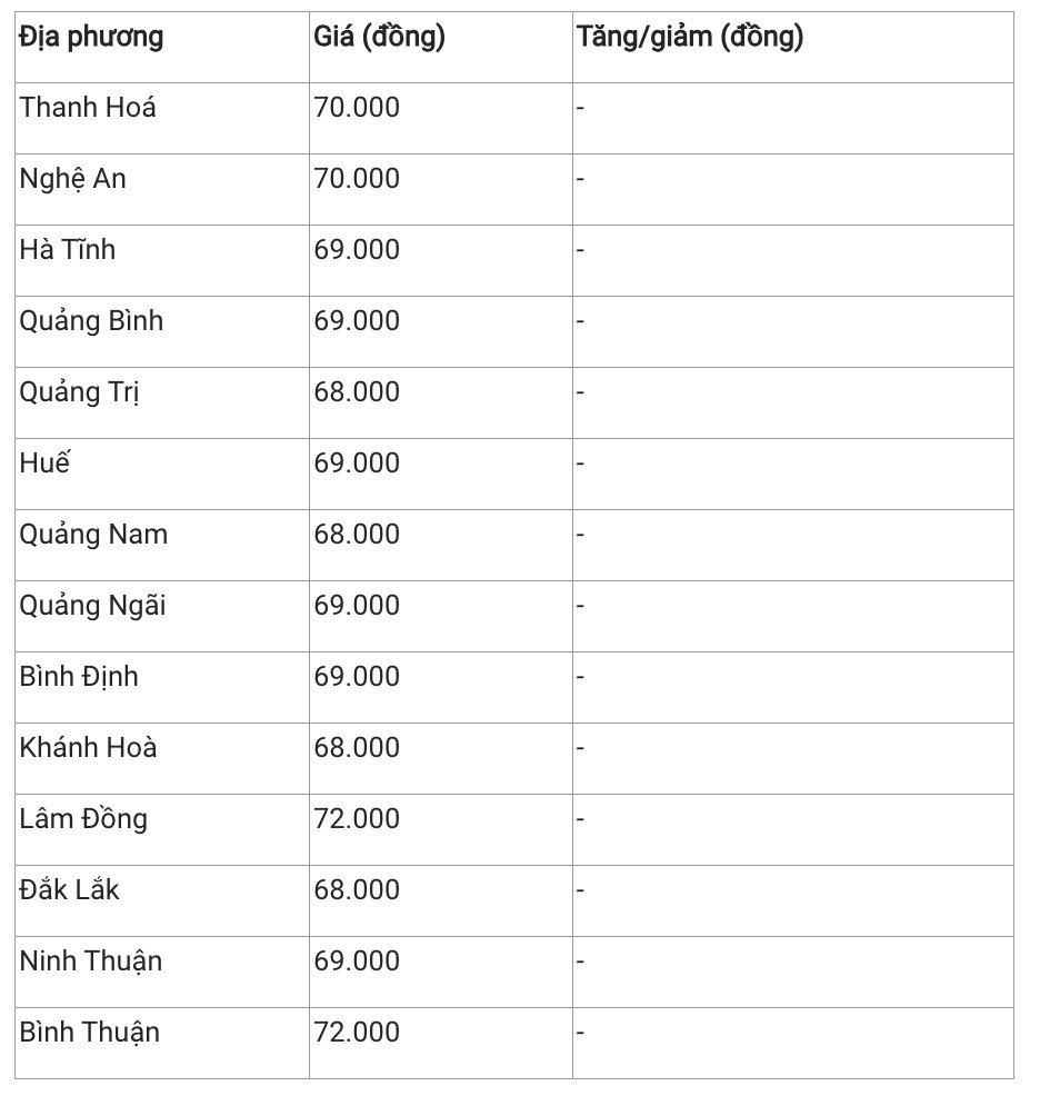 Hiện, giá heo hơi khu vực này duy trì trong khoảng 68.000 – 72. 000 đồng/kg. Trong đó, Bình Thuận và Lâm Đồng có giá heo hơi cao nhất khu vực với 72.000 đồng/kg.