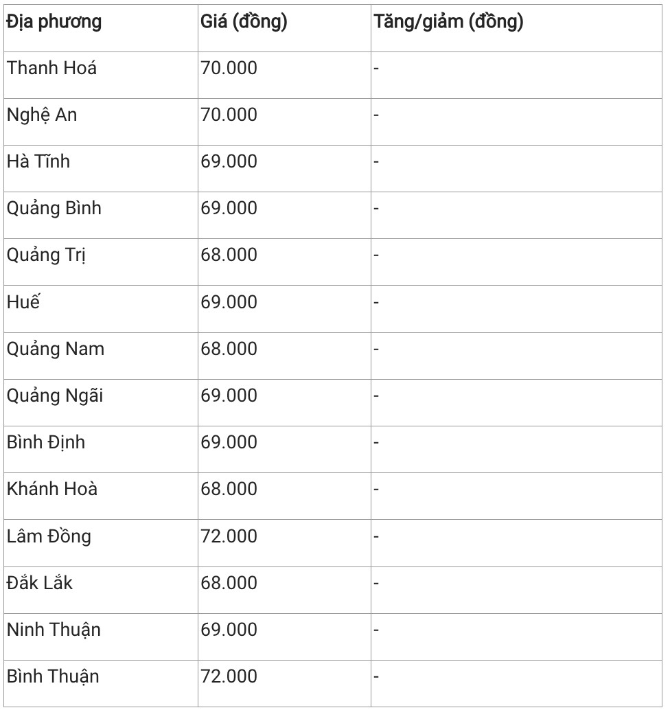 Hiện, giá heo hơi khu vực này dao động trong khoảng 68.000 – 72. 000 đồng/kg. Trong đó, Bình Thuận và Lâm Đồng có giá heo hơi cao nhất khu vực với 72.000 đồng/kg. Ngược lại, Quảng Trị, Quảng Nam, Khánh Hoà và Đắk Lắk bán heo hơi thấp nhất khu vực với mức 68.000 đồng/kg.