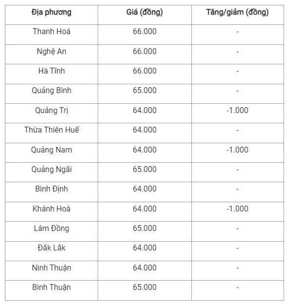 Các địa phương còn lại tại khu vực đều cùng giao dịch với giá 66.000 đồng/kg.