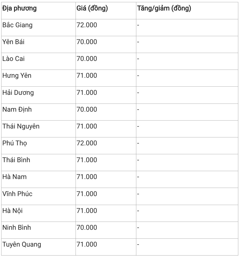 Hiện giá heo hơi khu vực này duy trì trong khoảng 70.000 - 72.000 đồng/kg. Trong đó, Phú Thọ và Bắc Giang là 2 địa phương có giá heo hơi cao nhất khu vực với 72.000 đồng/kg. Ngược lại, Lào Cai, Nam Định và Ninh Bình cùng giao dịch tại mức 70.000 đồng/kg, thấp nhất khu vực.