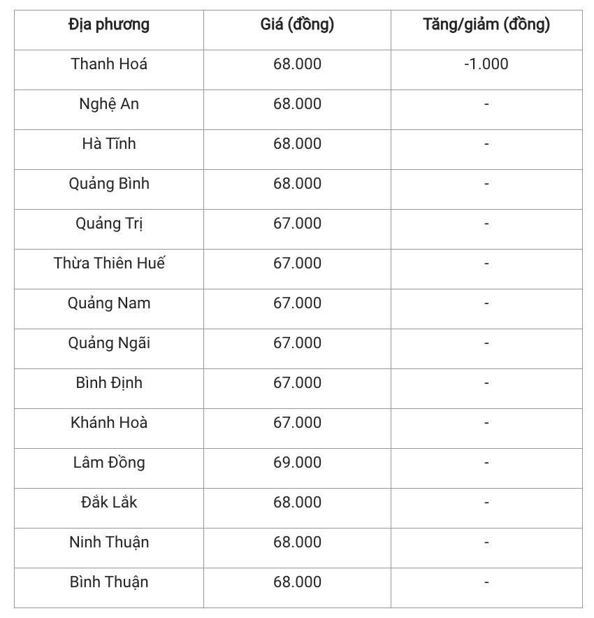 Trong đó, tỉnh Lâm Đồng có giá heo hơi cao nhất khu vực với mức giá 69.000 đồng/kg. Các tỉnh còn lại có giá heo hơi dao động từ 67.000 – 68.000 đồng/kg.